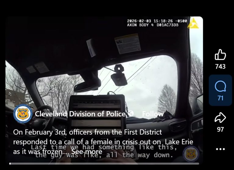 Helping a Woman in Crisis Added on February 4, 2026 On February 3rd, officers from the First District responded to a call of a female in crisis out on Lake Erie as it was frozen.